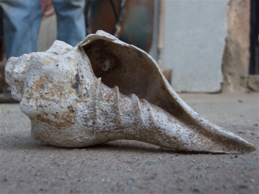 A shell (caracol) that Uncle Pedro found on his land on the ridge, what we know to have been a favorite haunt and likely burial spot for the pre-columbian inhabitants. We're a good ways from the ocean, maybe 90 miles from Puerto Vallerta. as a bird flys. Anyway, the original inhabitants got this somehow, and they must have thought it pretty special. Remarkable it is still in such perfect condition. Probably 500 years old, but I suppose it could also have been left up there by someone in 1850. We'll never know. Carbon dating would probably help.