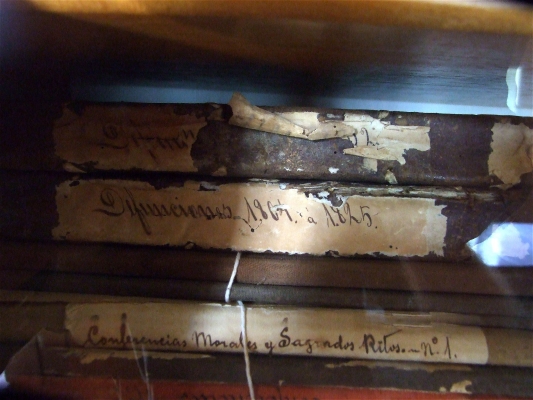 In the newer church in Ahuacatlan there was a spacious room not far inside of a room where a woman at a simple desk told me to go right in. Inside some glass fronted cabinets were many feet of ledgers of matrimonial records stretching back well into the 19th century. At the top of one stack, layed side-ways were some including these. I can't figure out what 'definicin..........in the very writing, my wife explained it. Defunciones. Deaths. The one in the middle is 1804 to 1825. The earlier one is thru 1802. Adams was President in 1802 ..I think.