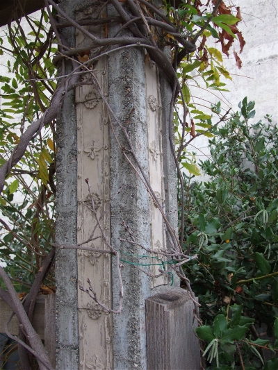 Concrete posts. Ceramic tiles set in. Remarkable piece of work.