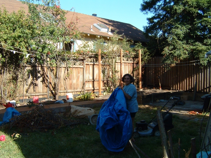 Backyard at this point. Plum trees are gone. Putting up an arbor. Plants and climbing roses coming soon.