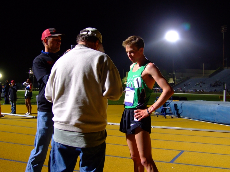 after the American 5,000 meter record: 12:56, the splits of which I'm