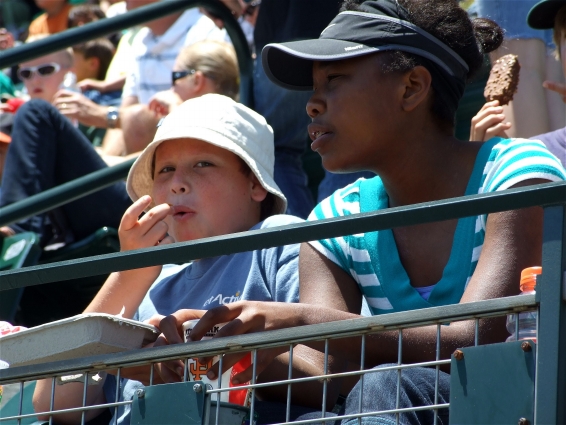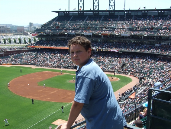 Above: James at a Marlins-Giants game. I walked over at lunch ...to point out the finer points.