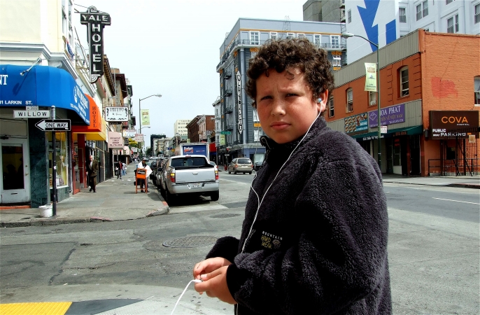 Tenderloin. "James, let this be a lesson...." Maybe you can see the guy tottering down the street. Waiting outside while Vietnamese sandwhiches are being made.