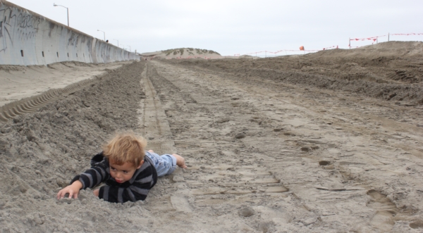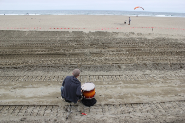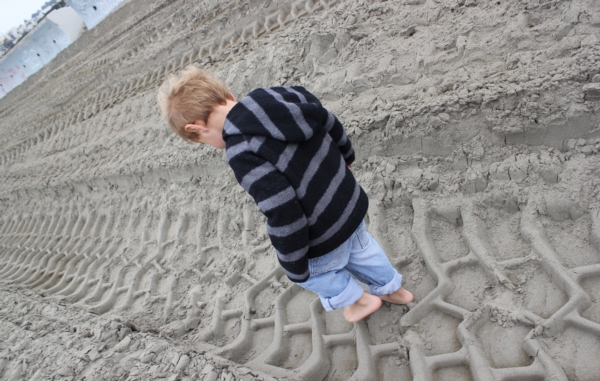 Beach. Julian used feet to crunch the forms made by said