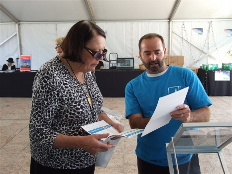 While doing a picture shoot for a PG&E event at Union Square, James came over on BART, called me on his cell outside of Powell Street Station, and with forceful guidance, made his way up Powell Street 2 or three blocks, past the tourists and bums, and followed the cable car tracks to the square. We met. He toured the exhibition, and we went back to BART/Muni and took the N-Judah to 19th street - a short walk from the Park. Lunched on falafels in the back garden of Yumma's, and then strolled to Stowe Lake, where we dithered backward and forward in a paddle boat on a damn hot day, and were fortunate to watch two ducks mix it up for at least 90 seconds, and observed carefully a big dead fish bobbing in the water, among other things.