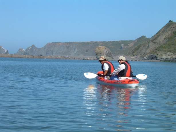 We left at 1:30 on the Friday, the last day of school, for Pomo Canyon campground, which is close to the Russian River on the Sonoma Coast. We snagged a good site, built a big fire with the branches of the plums trees I cut down last week, at hot dogs, cooked some steak for the next morning, took a hike through the redwoods (the canyon was logged in the 20s or 30s, which left some gigantic stumps that you can climb up on or walk into the hollow middle space,and they are circled by what are now very large redwoods that grew from the seeds at the base of the tree) hit the tents. The next morning we drove a few miles east to Duncan Mills to get set up with a couple of kayaks. They took us back to Jenner , where the river hits the ocean, where we embarked. We went downstream a ways to the mouth of the river where a lot of sea lions live/summer/lounge about. We beached the canoes on the lee side of the beach there to let the kids swim in the river. I walked over to the beach, where the wind is always blowing pretty hard. Then we headed upstream, but Carlos and Angelica pretty much just zigzagged and went in circles, so we changed our plans and paddled around in that stretch of the river. A few seals were surfacing at times, to check us out, which is always a treat.
