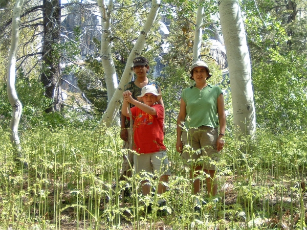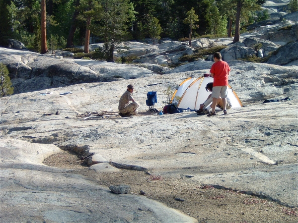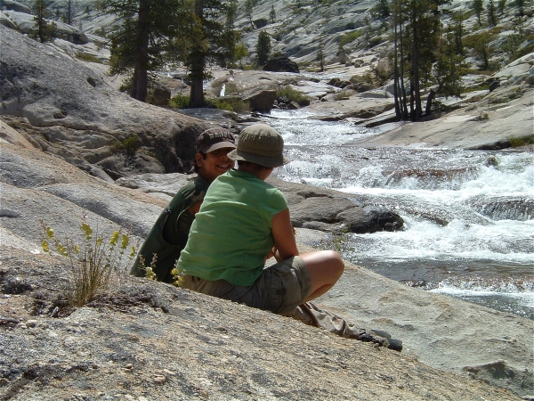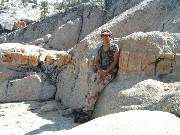 Below, note the vein of rock through the granite. The vein was more marble-like. Veins like this can run hundreds of yards through the granite in Emigrant Wilderness. Long ago, deep underground, the granite fractured and magma shot through., resulting in these neat marvels. They're usually much narrower. From an inch to 6 inches.